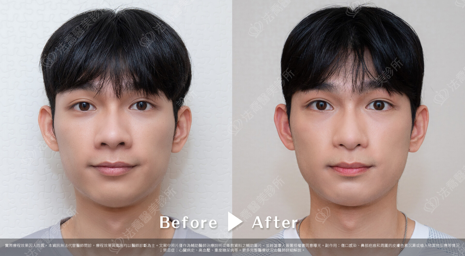 在邱浚彥院長的建議下,Ryan 選擇了「縮鼻翼+縮鼻頭」的手術,針對鼻翼外擴與鼻頭圓鈍做改善。